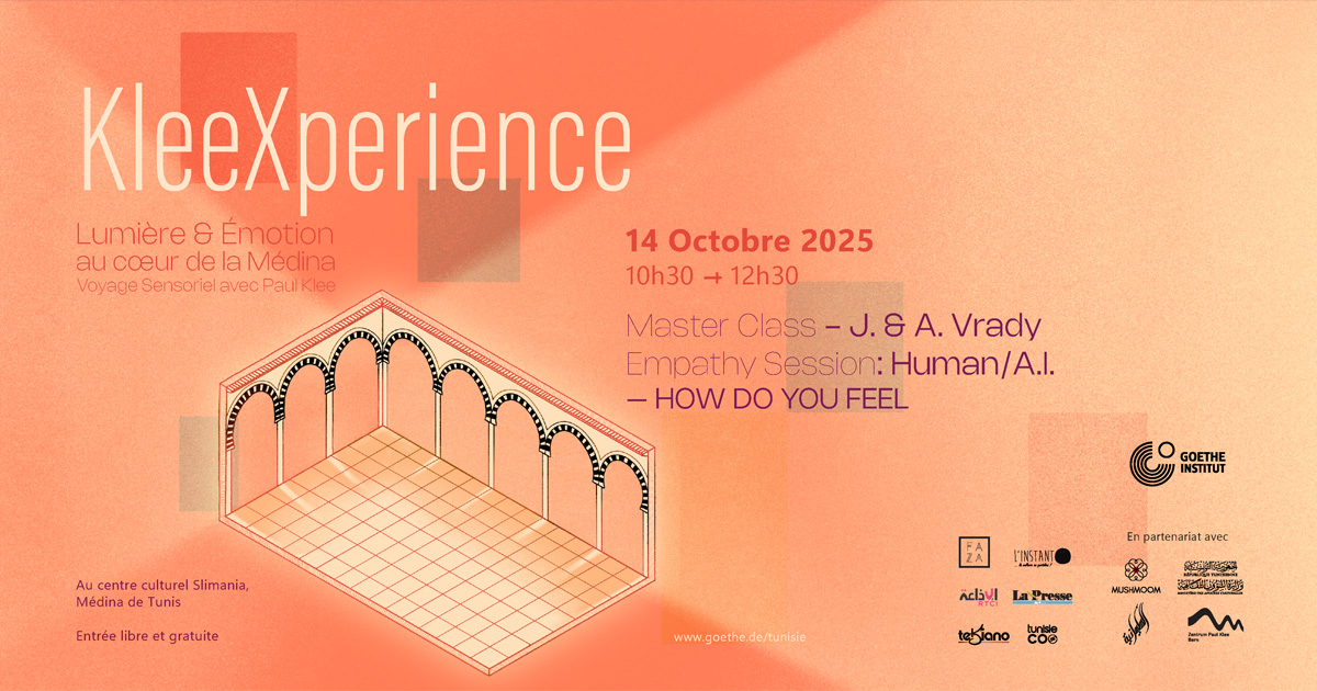 Le Goethe-Institut, en partenariat avec Mushmoom, le Centre culturel Slimania et le Zentrum Paul Klee de Berne, organise la masterclass “Empathy Session: Human/A.I. – How Do You Feel”, animée par Juliana et Andrey Vrady, dans le cadre de la série KleeXperience : Lumière & Emotion au cœur de la Médina.