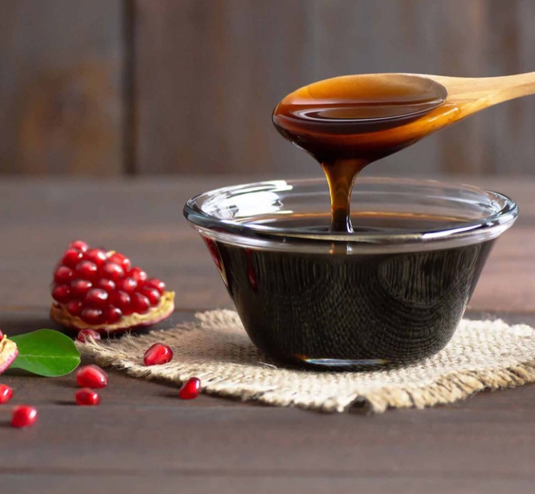 Plutôt que dans un ragoût spécifique, son jus ou ses grains sont utilisés pour créer des sauces sucrées-salées complexes qui accompagnent les viandes, notamment l'agneau ou le poulet. La mélasse de grenade (Robb), un sirop concentré et acidulé, est aussi très prisée comme condiment ou base de marinade.