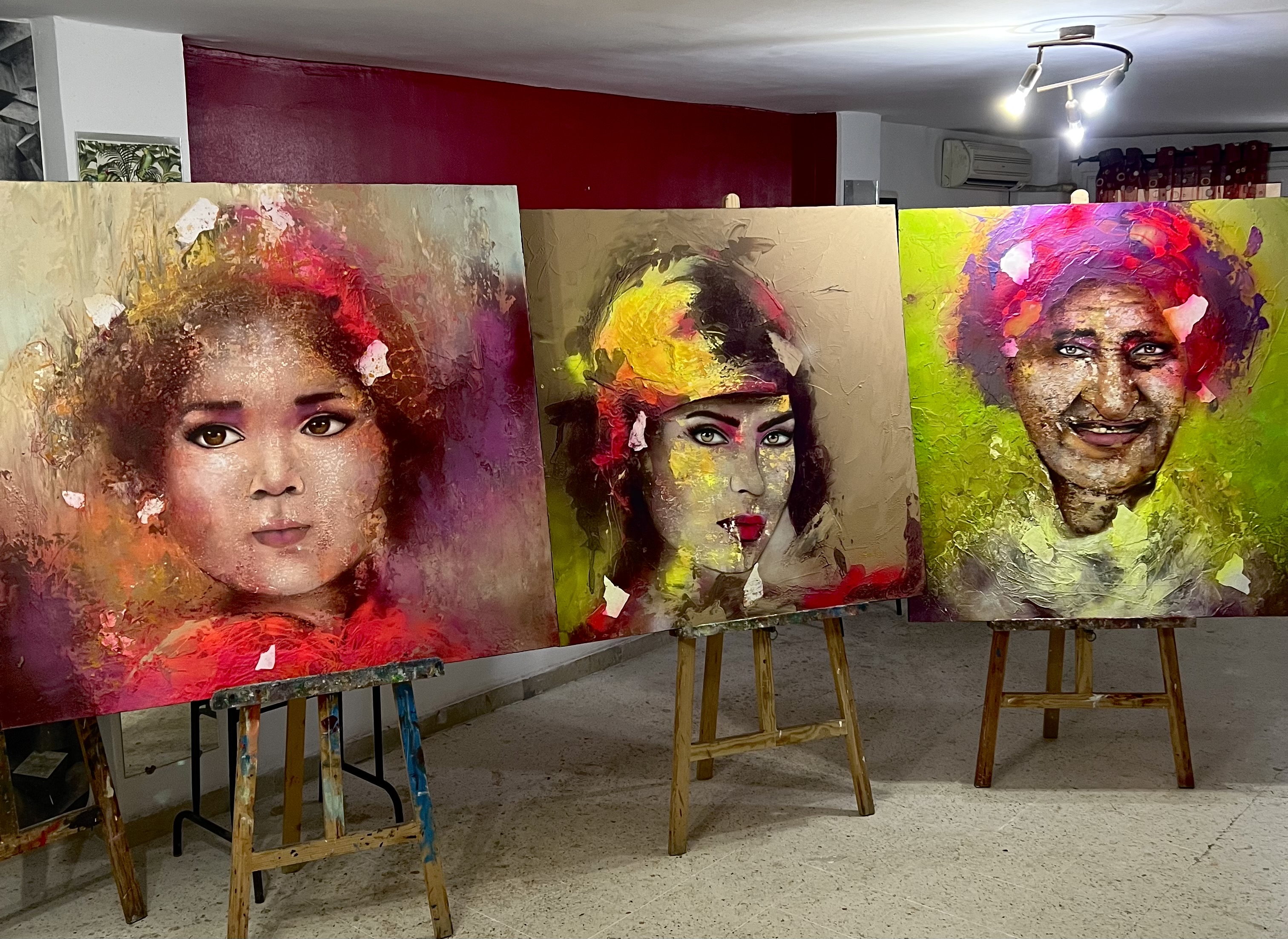 Chez Sana Hichri, la peinture n’est jamais décorative. Elle est vivante, dense, et parfois presque sculptée. La matière y prend une dimension charnelle, traduisant la force intérieure de l’artiste.