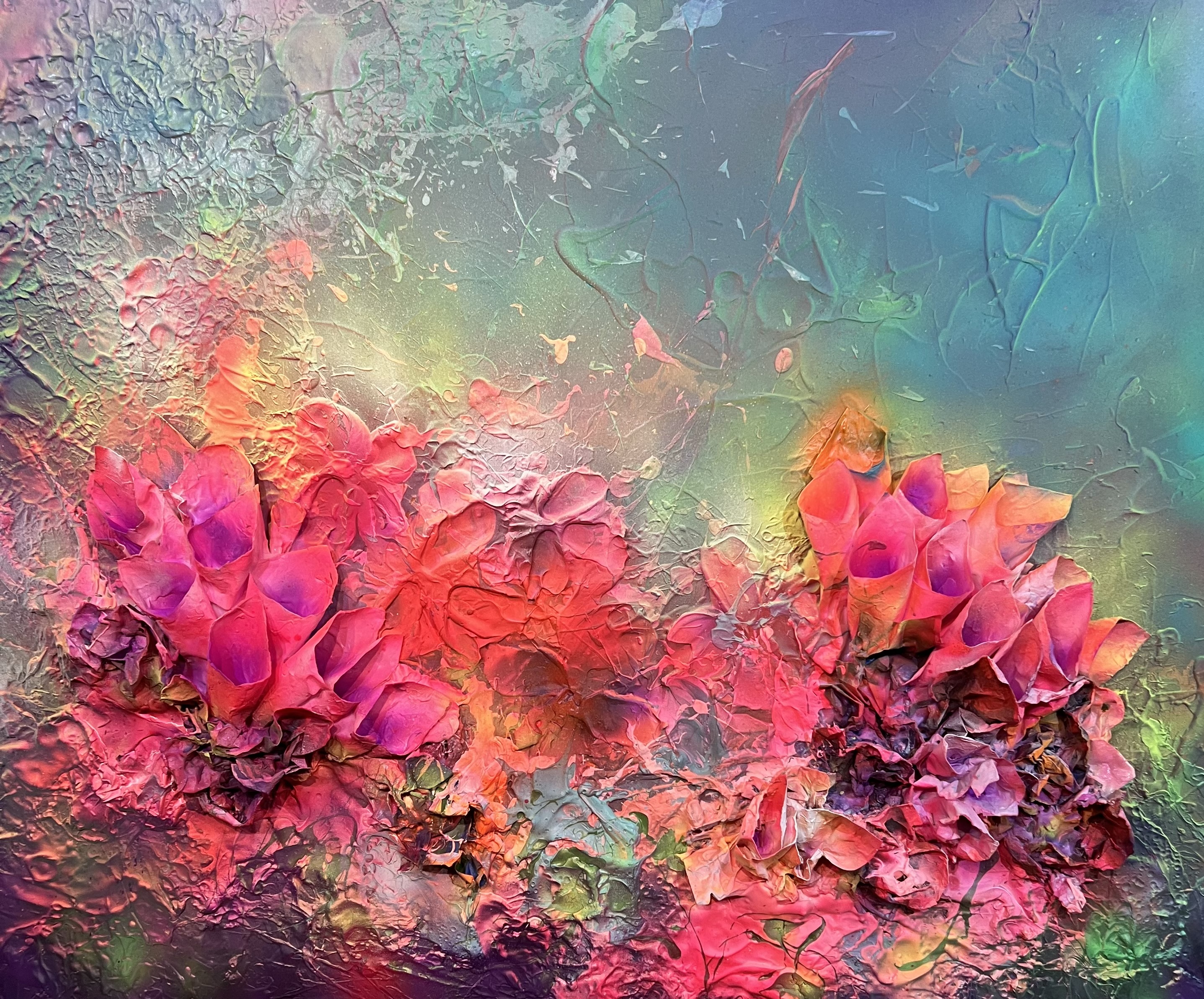 « Je ne gaspille pas la peinture, je lui donne une voix. Chaque couche épaisse est une respiration, chaque relief une trace de vie » confie-t-elle.