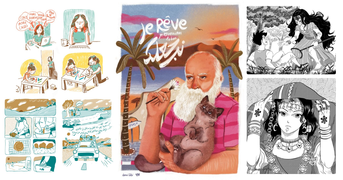 Noha Habaieb, formée en bande dessinée en Belgique, a cofondé le magazine primé Lab619 en Tunisie. Elle a contribué à son évolution avec ses bandes dessinées originales, organisé des résidences artistiques et participé à des expositions internationales. Elle a également été membre du jury du Prix Mahmoud Kahil et de l’Exposition de Sharjah.