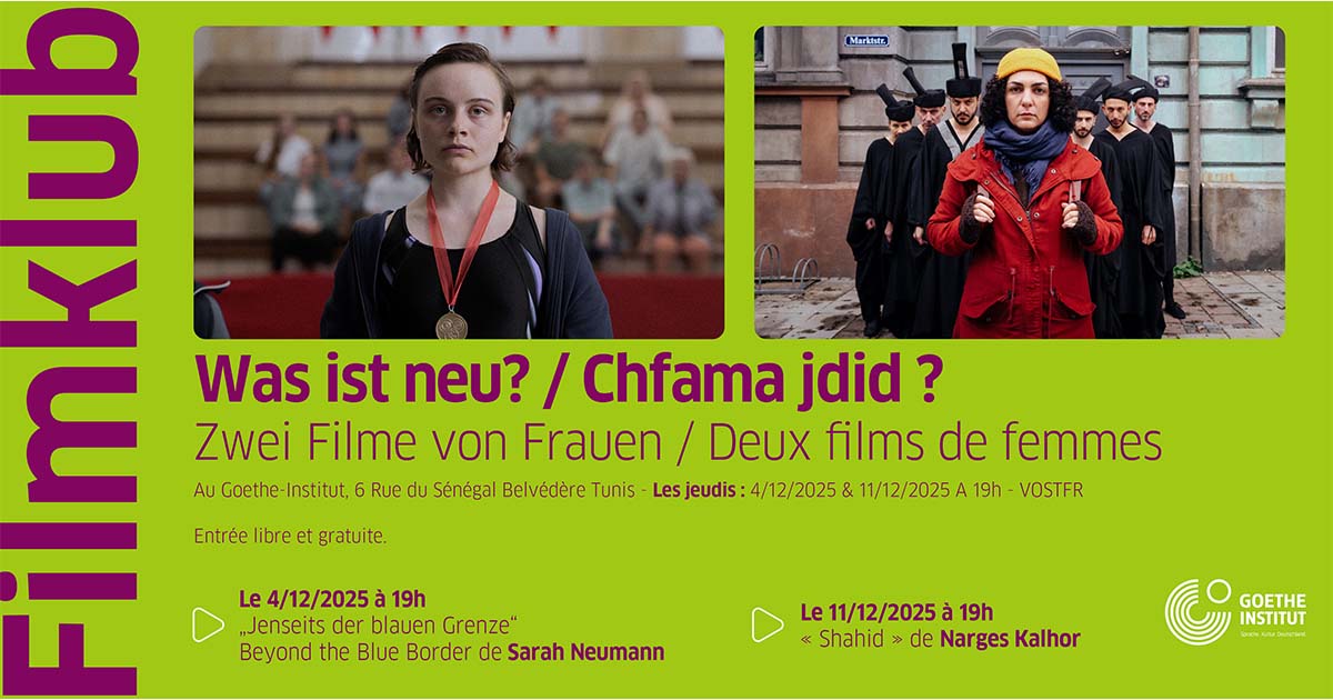 Le Filmklub, programmation cinématographique du Goethe-Institut Tunis, propose la projection de deux films récents de réalisatrices allemandes, sous-titrés en français, pour découvrir les nouvelles voix et tendances du cinéma germanophone.