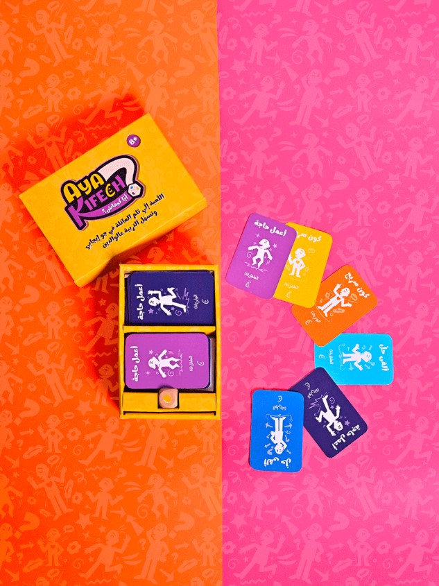 AYAKIFECH est composé de 240 cartes qui mêlenAYAKIFECH : un jeu de société - 100% made in Tunisia - pour recréer des liens en famillet des questions, des actions, des situations. Chaque carte est une porte d’entrée vers une discussion, une émotion, un souvenir ou un défi à relever ensemble. Loin des écrans, il propose aux familles un temps de qualité où chacun peut s’exprimer et être entendu.