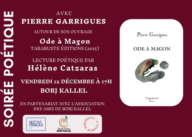 Cette semaine, plusieurs rendez-vous rythment la scène culturelle. Le 10 décembre, l’Atelier de Slam avec Khaled Bediri ouvre la programmation. Le 12 décembre réunit trois temps forts : Last Show Big Bossa de Wajiha Jendoubi, la rencontre littéraire avec Pierre Garrigues et Hélène Catzaras, et Mel7em au Bee Hive Club.