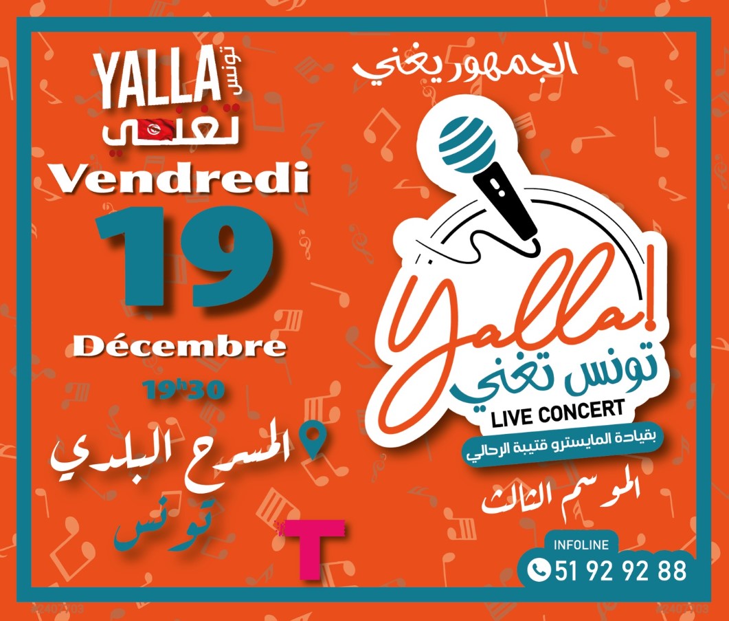 Yalla Tounes Tghani s’impose progressivement comme l’un des rendez-vous musicaux les plus participatifs du pays. Le concept est simple : un orchestre live, un répertoire populaire et un public invité à chanter ensemble, sans barrière scène–salle. L’événement attire des profils variés, des habitués de soirées culturelles aux jeunes curieux de découvrir un format convivial où la musique devient un langage collectif. Avec son ambiance accessible et son organisation fluide, Yalla Tounes Tghani contribue à installer une nouvelle dynamique sociale autour du chant partagé en Tunisie.