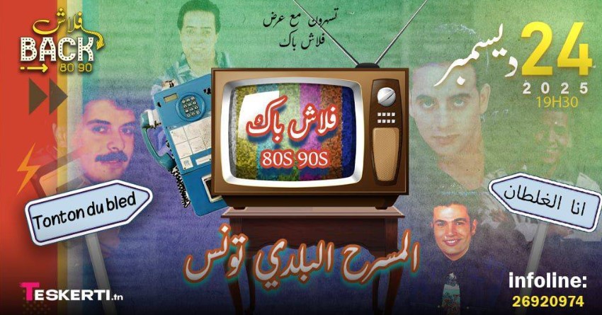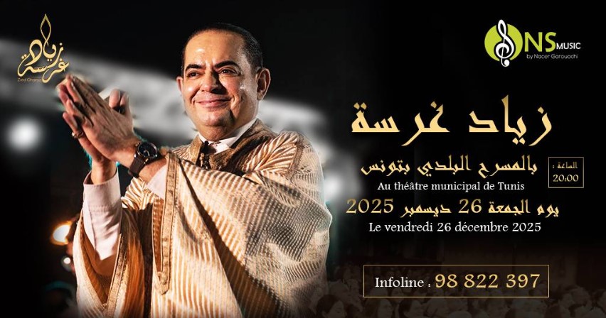 Du 24 au 28 décembre 2025, la scène culturelle tunisienne propose un programme varié entre concerts, spectacles musicaux et théâtre. Du Flashback 90s / 80s et Anime Symphony au Théâtre municipal de Tunis, à la soirée Zied Gharsa, en passant par Kolna Nghani et Yalla Nghani à Sfax, sans oublier la pièce Hella Feki : Une reine sans royaume à Al Kitab Mutuelleville, voici notre sélection complète des événements à ne pas manquer cette semaine.