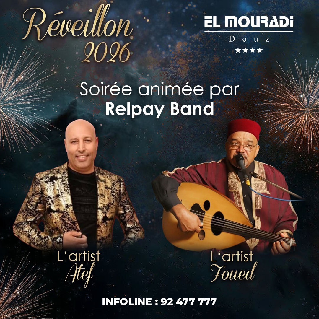 De Gammarth à Douz, en passant par Hammamet, Sousse et Tozeur, les événements programmés dans les hôtels El Mouradi s’inscrivent dans le cadre d’offres spéciales Nouvel An, mêlant cuisine raffinée, atmosphères branchées, loisirs, détente et animations de haut niveau.