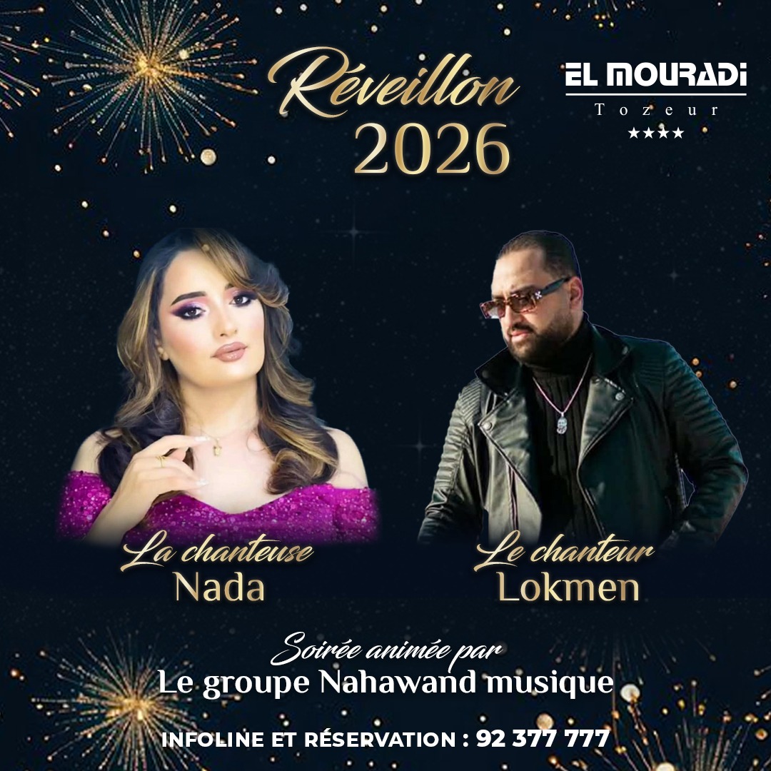 Les festivités se poursuivront dans les établissements d’El Mouradi Tozeur et Douz, où le groupe Nahawand, accompagné des chanteurs Lokmen et Nada, ainsi que le Replay Band, accompagné de Atef et Foued, assureront des spectacles mêlant traditions et musique contemporaine.