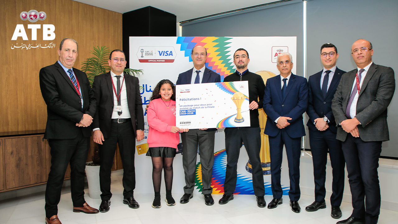 Le 24 décembre 2025, s’est tenue, au siège de l’ATB, la cérémonie de remise des récompenses aux gagnants du challenge organisé à l’occasion de la CAN Maroc 2025. Ce moment festif et empreint d’enthousiasme s’est déroulé en présence des représentants de l’Arab Tunisian Bank et de Visa International.
