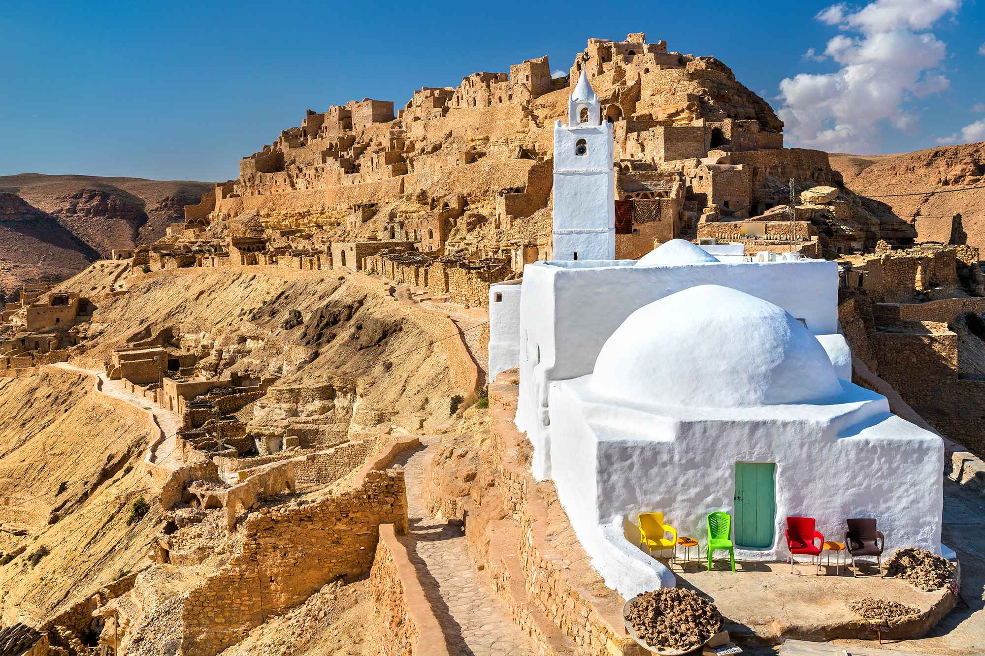 À 38 kilomètres de Médenine, Toujane se révèle comme l'un des villages les plus spectaculaires du sud tunisien. Fondé par les Berbères au douzième siècle, ce village montagnard se divise en deux parties séparées par une vallée, avec des maisons de pierre sèche qui se confondent naturellement avec le paysage.