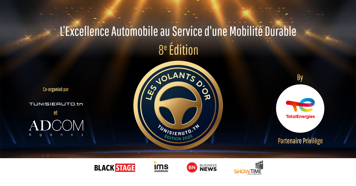 Organisée conjointement par tunisieauto.tn et ADCOM Agency, la 8e édition des Volants d’Or se tiendra le vendredi 6 février 2026 à l’hôtel Radisson Blu Hotel & Convention Center de Tunis.