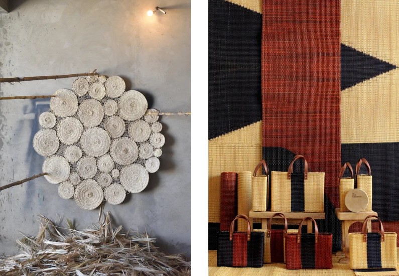 La marque intègre l’artisanat tunisien à la décoration intérieure. Tapis, paniers et textiles sont réalisés avec des tisserands de Nabeul, à partir de techniques traditionnelles et de matières locales.