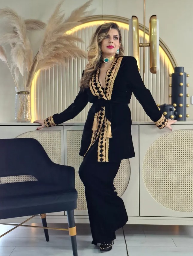 Spécialisée dans les tenues de cérémonie, la marque revisite la jebba tunisienne. Broderies fines, soie et fils précieux donnent naissance à des pièces cousues à la main, ancrées dans la tradition mais résolument modernes.