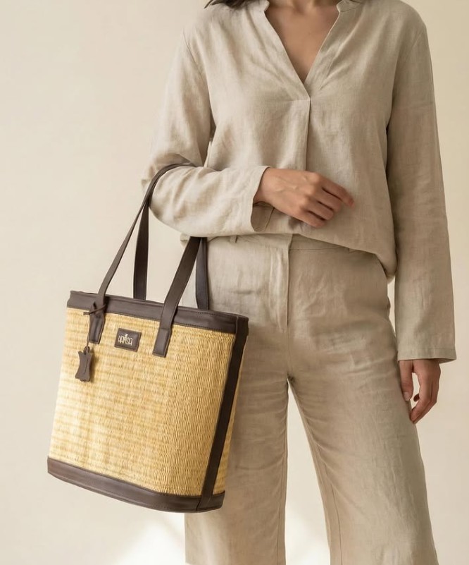 Basée à Sousse, la marque propose des sacs en feuilles de palmier, cuir naturel et bois. Les modèles mêlent tradition et élégance, avec un esprit artisanal chic et intemporel.
