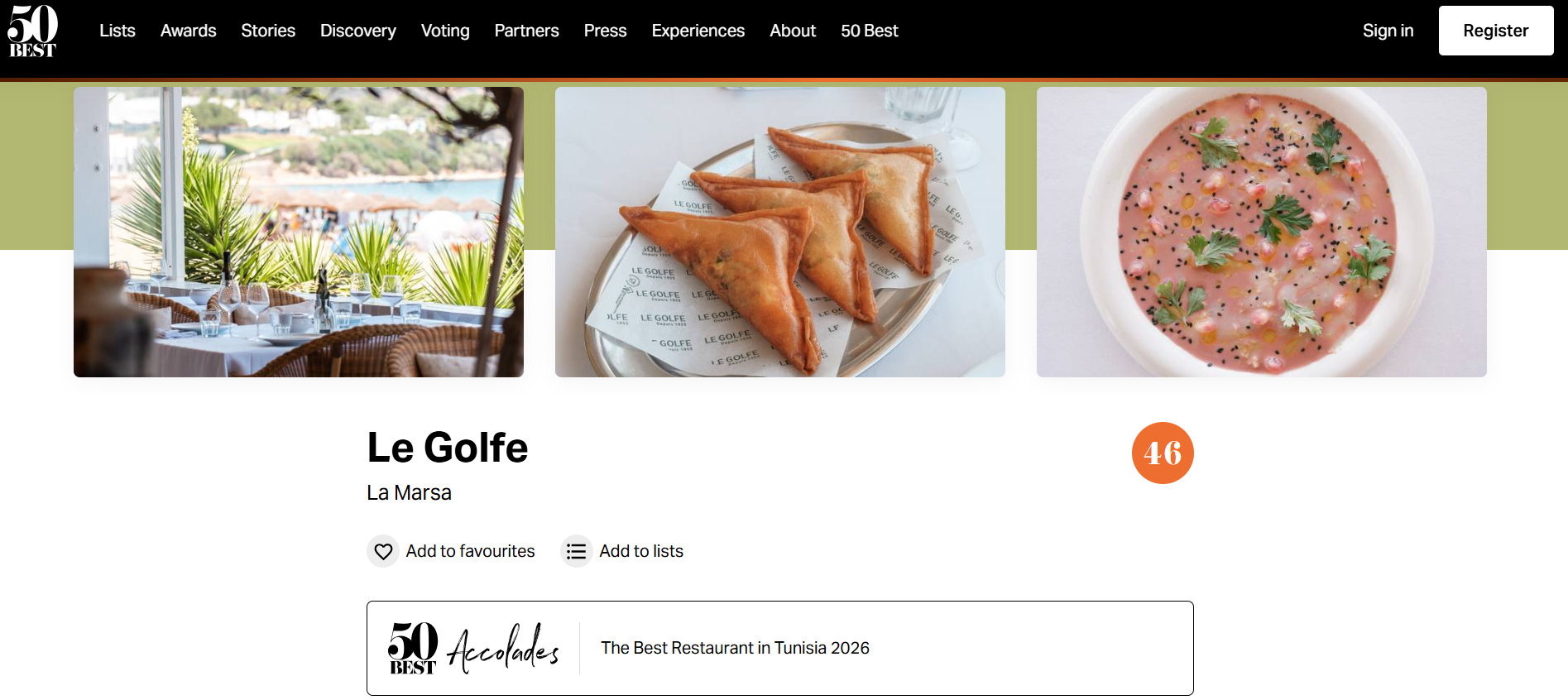 Dans un classement dominé par les géants de Dubaï, du Caire et de Tel-Aviv, Le Golfe porte fièrement le drapeau tunisien à la 46ème place. Cette distinction salue non seulement la qualité des produits , avec une mention spéciale pour leur travail exemplaire sur les produits de la mer et la boutargue mais aussi une maîtrise du service qui place la Tunisie sur la carte mondiale de la "Fine Dining".