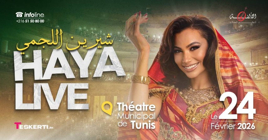 HAYA LIVE – Chirine Lajmi 21h30 - Théâtre Municipal de Tunis 40 TND