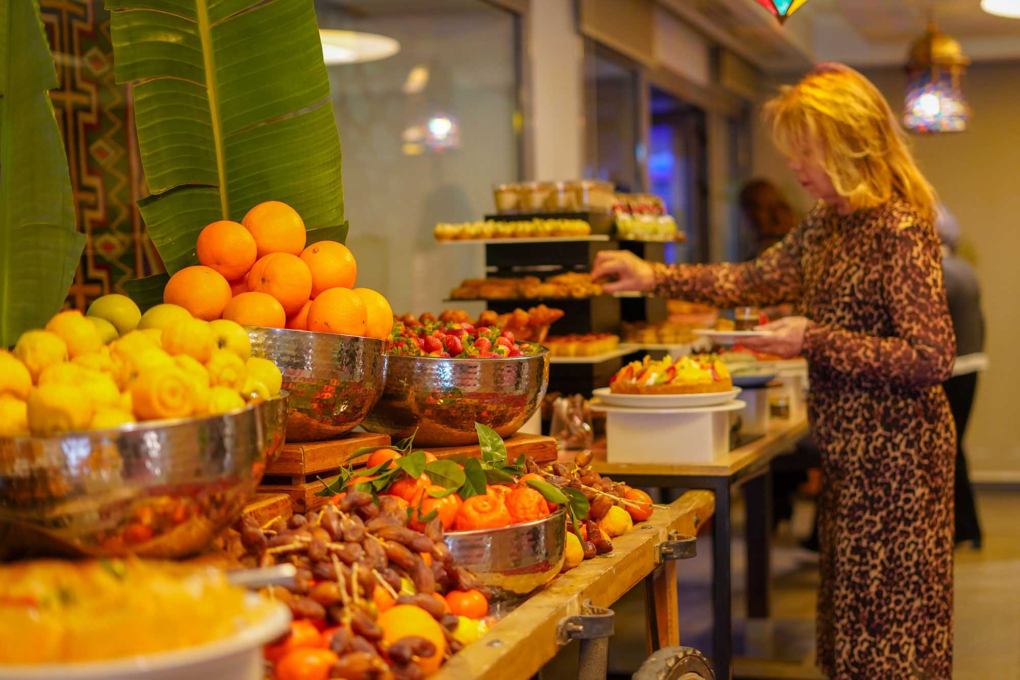 Pour clore ces deux expériences, nos maîtres pâtissiers proposent un assortiment de verrines, de fruits de saison et une sélection de pâtisseries tunisiennes et françaises, faisant du dessert un moment de pur plaisir.