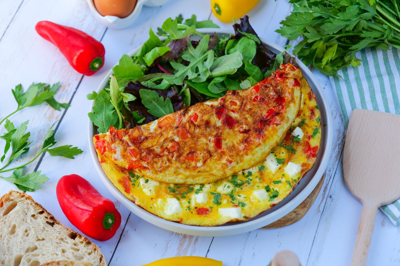 Faites revenir une poignée d’épinards et une tomate hachée dans un filet d’huile d’olive. Cassez 2 œufs, brouillez-les et assaisonnez de sel, poivre et cumin.
