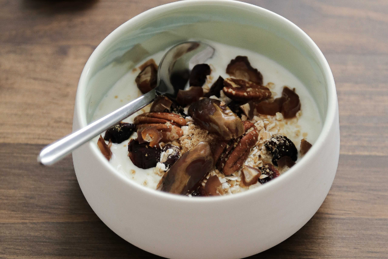 Le bol de yaourt grec aux dattes et amandes (5 min)