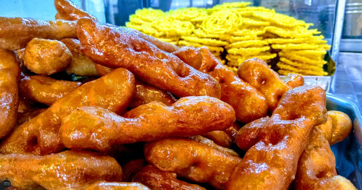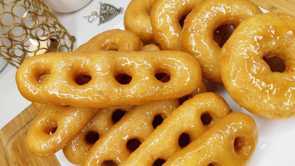 À côté de la spirale élégante, le mkharek affiche un look plus rustique et généreux : des beignets allongés ou légèrement ovales, souvent percés de trois ou quatre trous, dorés et luisants de miel. Sa texture est à la fois croustillante à l’extérieur et tendre à l’intérieur – un contraste parfait.