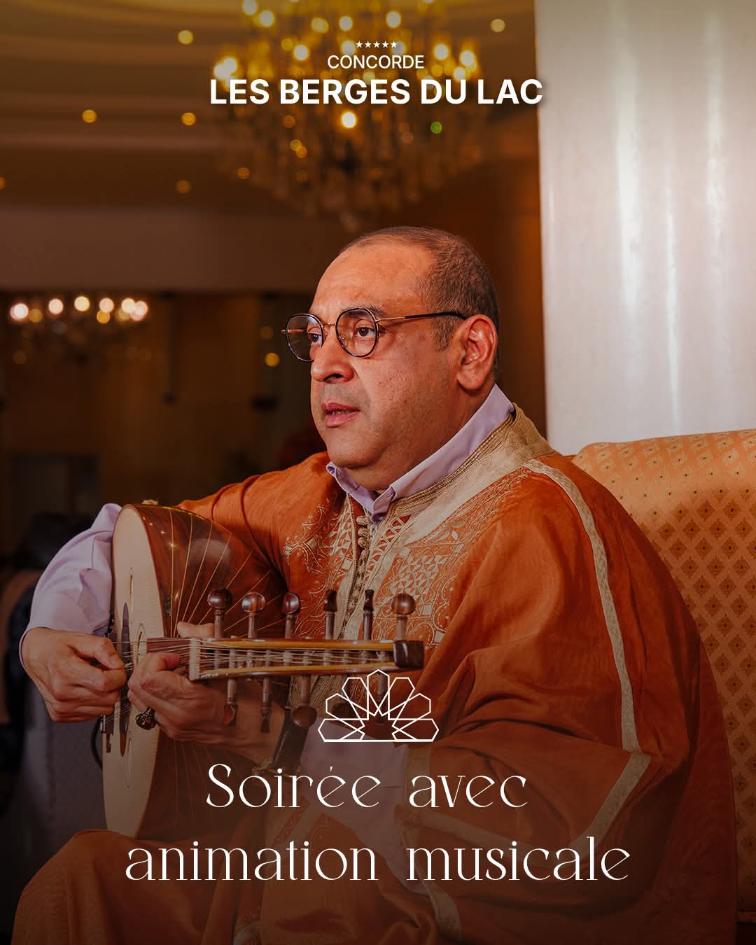 Chaque soir, les convives sont conviés à un buffet gastronomique d’exception à 120 DT par personne, sublimé par les mélodies envoûtantes du luthiste virtuose Chiheb Ezzehi, qui créera une ambiance musicale chaleureuse et authentique.