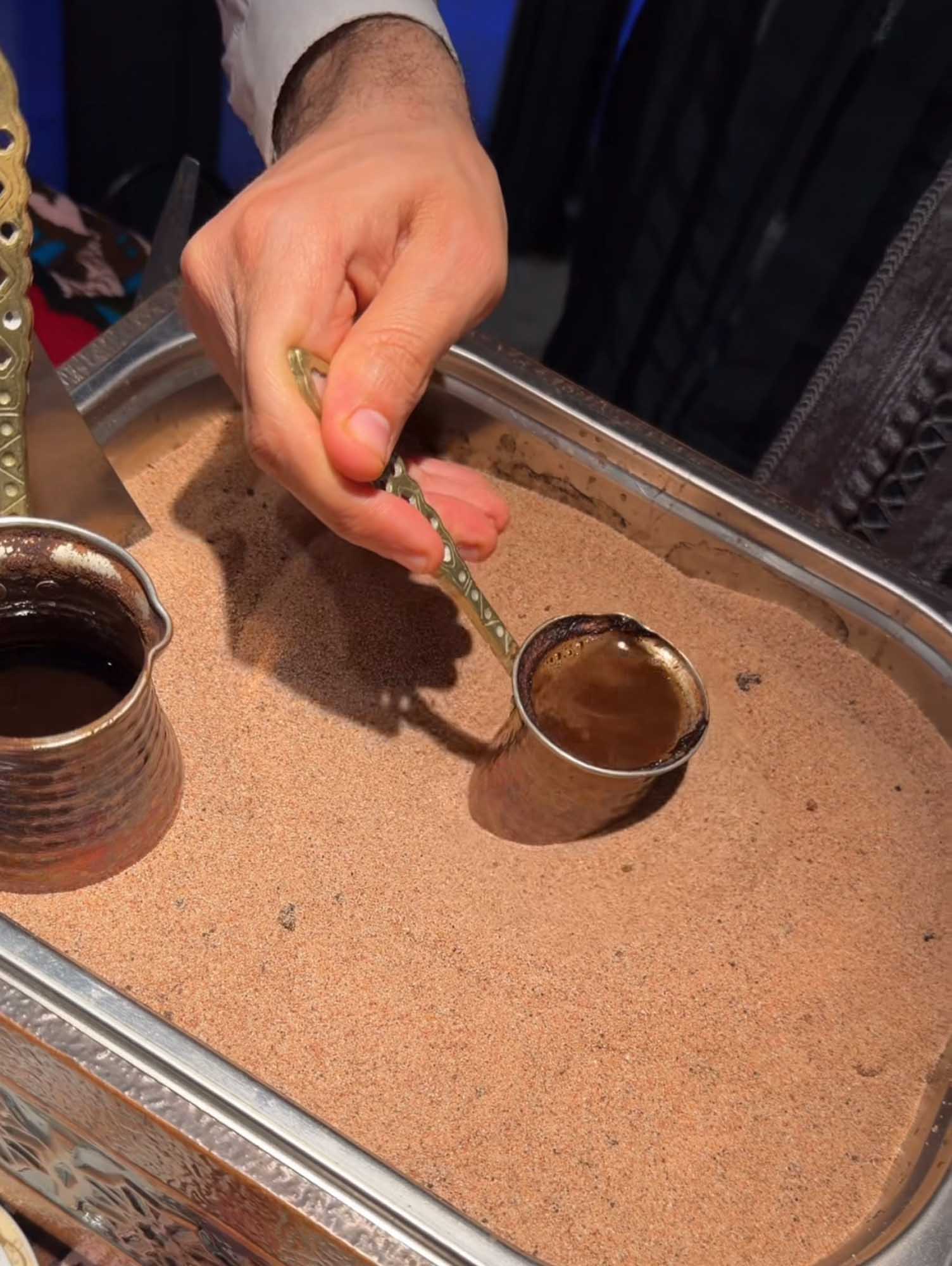 Prolongez cette expérience par un café turc spécialement préparé sur sable, ainsi qu'une délicate sélection de douceurs sucrées pour clôturer ce moment gourmand.
