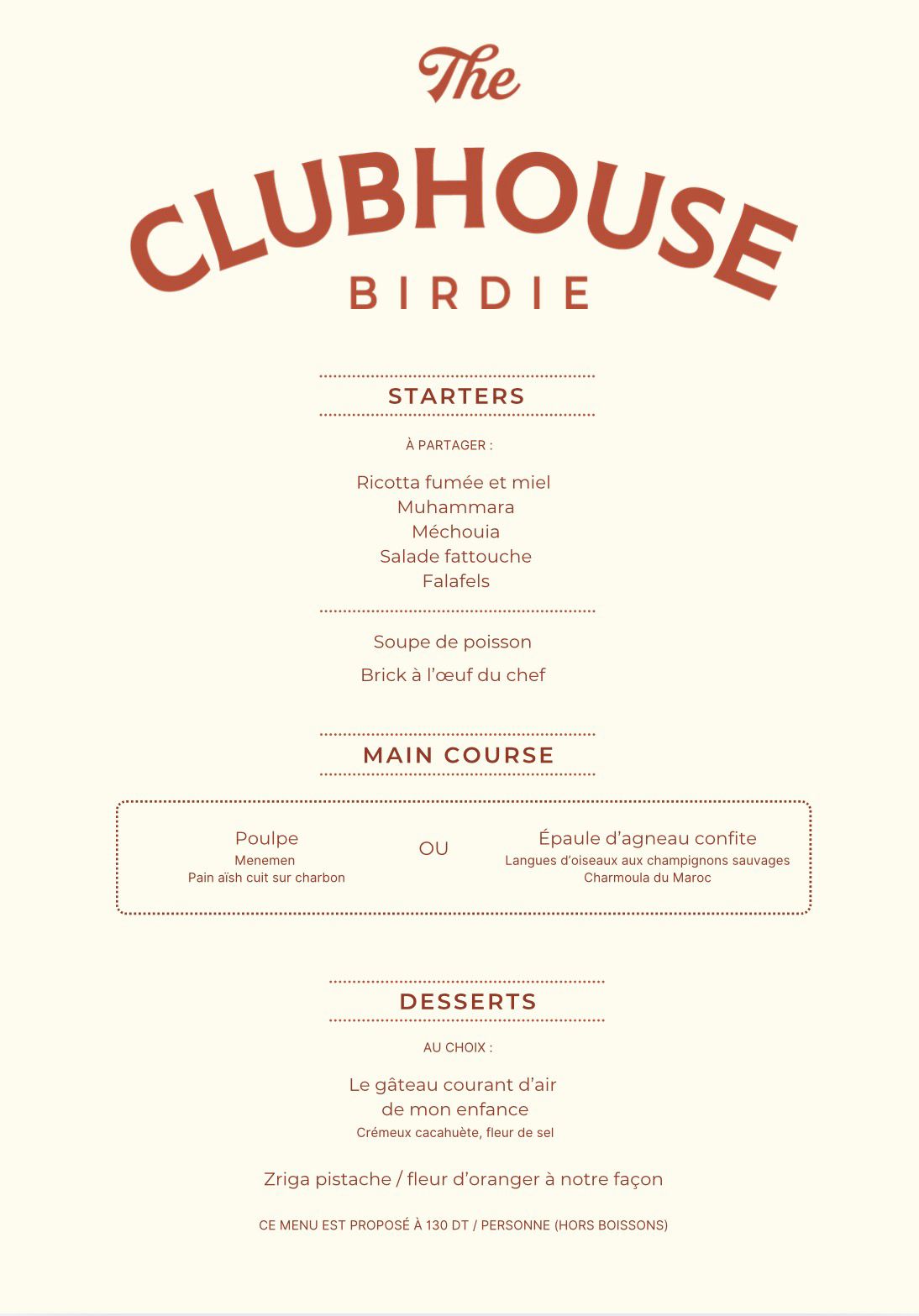 Pour 130 DT par personne, les convives sont invités à découvrir un menu spécialement conçu pour le mois sacré, mettant à l’honneur des saveurs authentiques et généreuses, dans un cadre moderne et chaleureux.