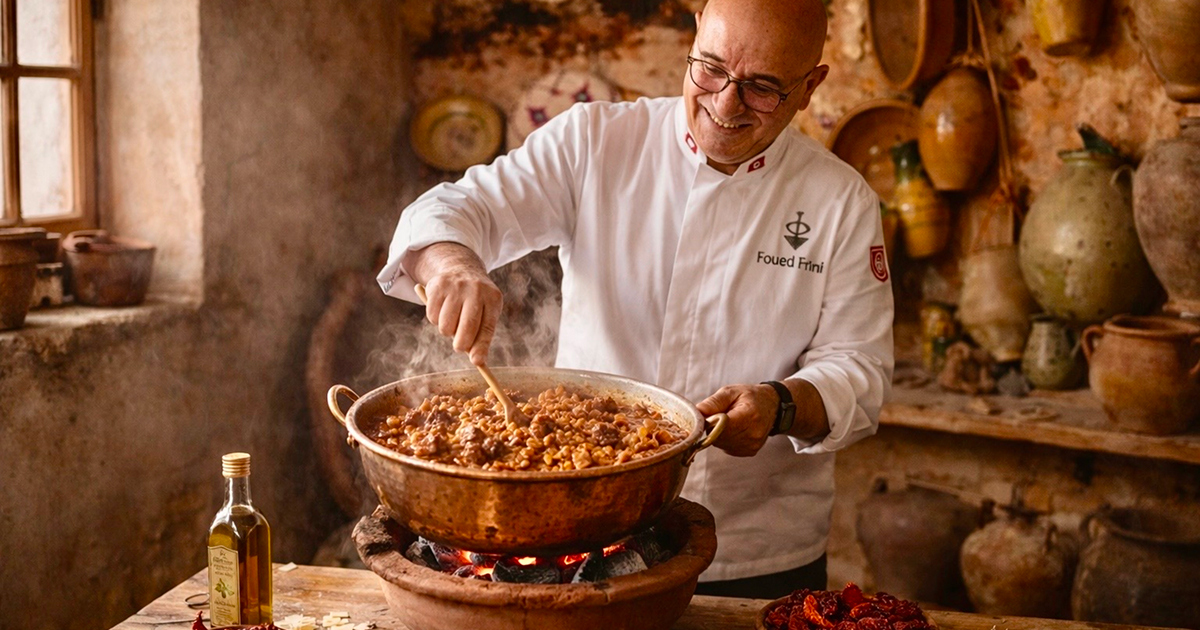 Ce trésor culinaire aurait pu rester une anecdote locale sans le travail de mémoire de passionnés comme le Chef Frini. Lors de son périple exhaustif à travers toutes les régions de la Tunisie, il est allé chercher cette recette au sens propre comme au figuré dans le "fond de la jarre" (Qaâ El Khabia - قاع الخابية). Il a exhumé ce plat de l'oubli pour nous en offrir les clés. Grâce à lui, nous pouvons aujourd'hui déchiffrer ce code complexe qui lie l'outil (Akorbaz), la terre (Tabia) et l'histoire (Mnechi), redonnant ses lettres de noblesse à une cuisine de survie souvent méconnue.